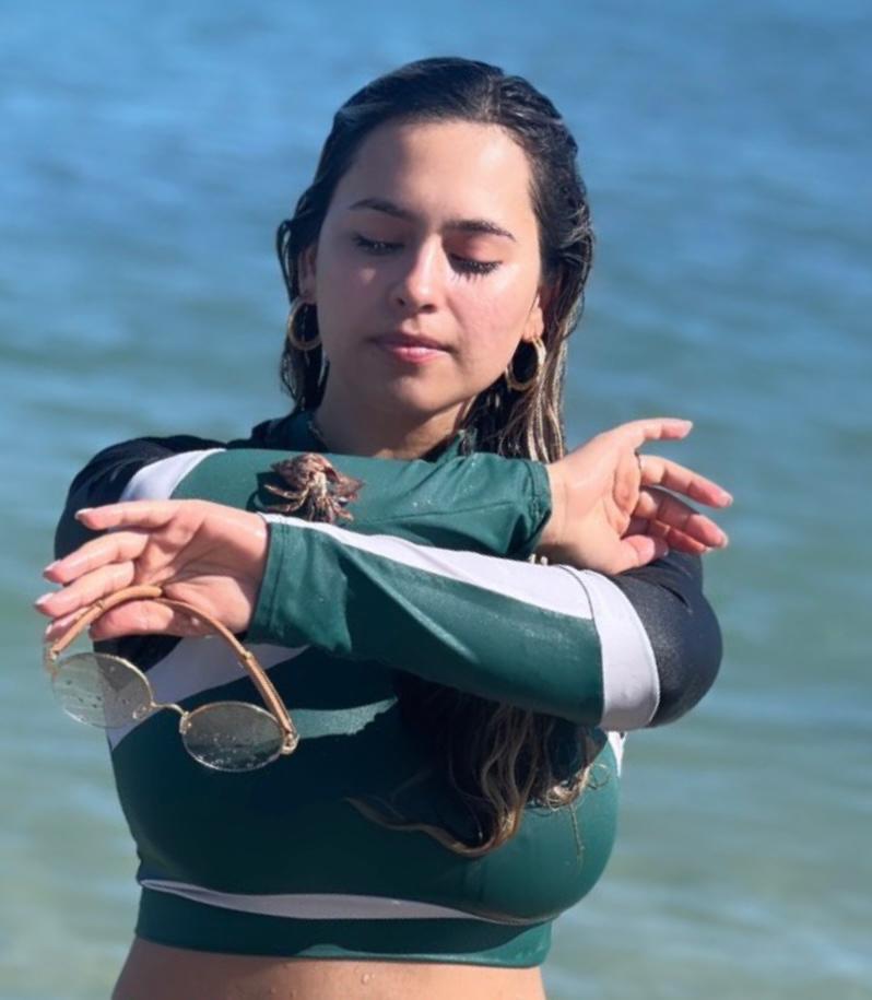 Eglis Diana Lara, expareja y madre de la hija del cantante hondureño Juan Carlos Lara, conocido como Mr. JC el del palabreo, robó miradas mientras posó en la playa con un ajustado traje de baño.