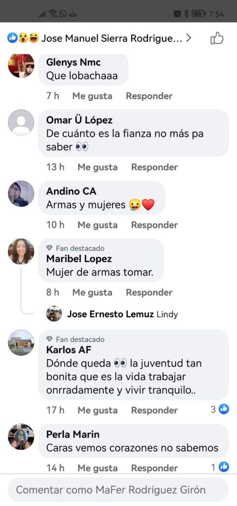 “La mujer perfecta”, “Hermosa toda una hembra”, “Completa”, “Armas y mujeres, es todo”, “La reina del sur”, “Qué bonita es la chava”, “La mera reina del sur”, “Me caso” son algunos de los comentarios.