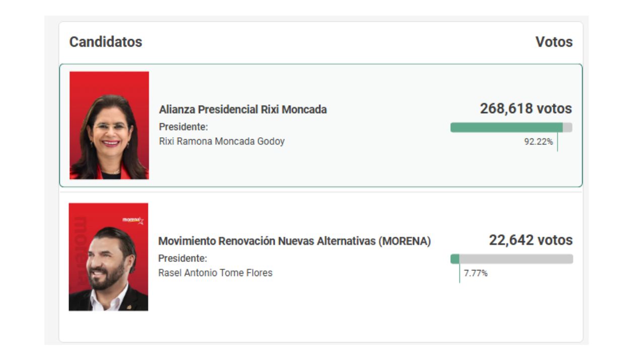 Con un 92.22% de los votos a su favor, hasta el momento Moncada lidera los resultados en la contienda interna de Libre.