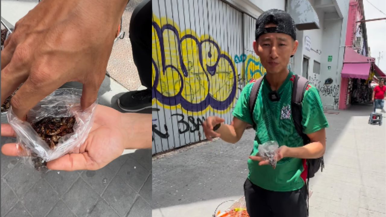 En el video, el cual alcanza más de 140 mil reproducciones, el japonés muestra los 'chapulines' en una bolsa, los que son parte de la gastronomía del país azteca.